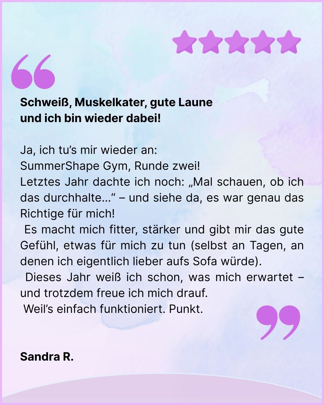 Mit der Summer Shape Gym Edition zeige ich dir, wie du auch mit wenig Zeit deinen Körper spürbar verändern kannst – für mehr Energie, Selbstvertrauen & Wohlgefühl.